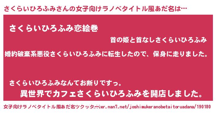 | 男性向けラノベタイトル風あだ名 | 『サクライヒロフミスレイヤー』 |