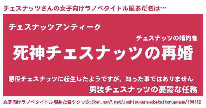 | 伝説のあだ名 | 『救世主となる占い師チェスナッツ』 |