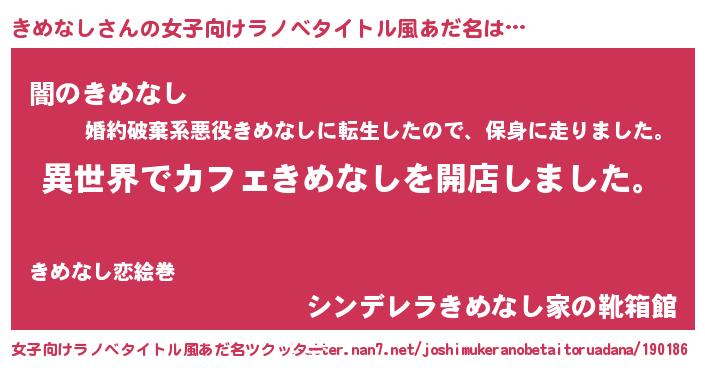 | ヒーロー風カッコイイあだ名 | 『ネオキメナシ』『サイバー戦士キメナシ』 |