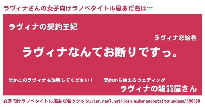 | 意味不明あだ名 | 『自称ラヴィナ』『永久保存ラヴィナ』 |