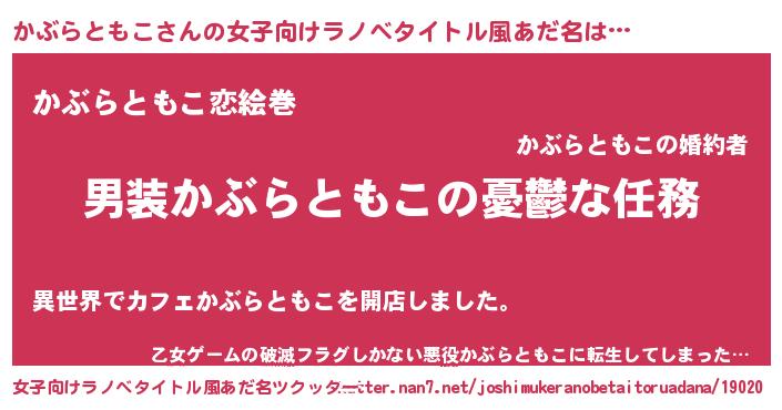 | 男性向けラノベタイトル風あだ名 | 『うちのかぶらともこが世界を掌握している!』 |