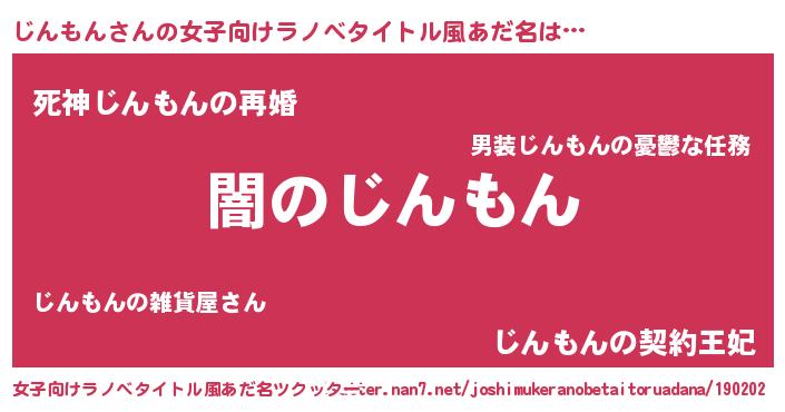 | 意味不明あだ名 | 『自称じんもん』『永久保存じんもん』 |