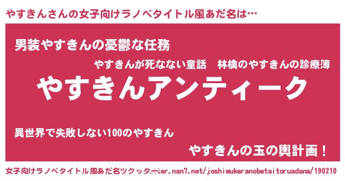 | 男性向けラノベタイトル風あだ名 | 『魔法科高校のやすきん』 |