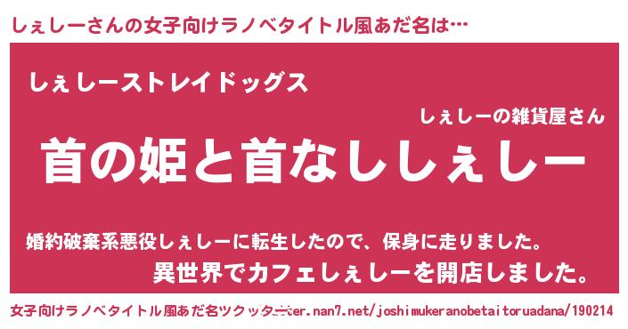 | 意味不明あだ名 | 『自称しぇしー』『永久保存しぇしー』 |