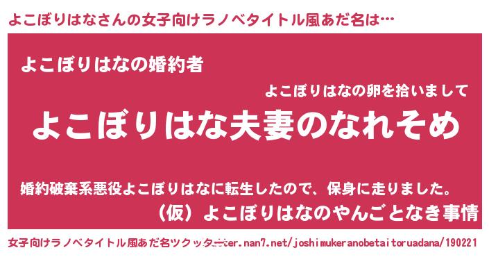 | 料理風あだ名 | 『よこぼりはなのトマト煮』 |