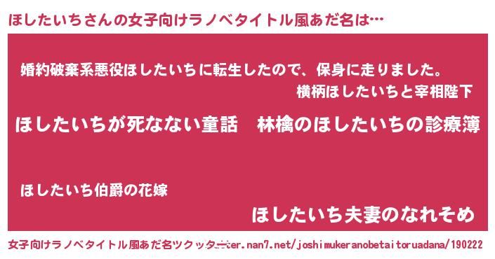| 意味不明あだ名 | 『住所不定無職ほしたいち(59歳)』 |