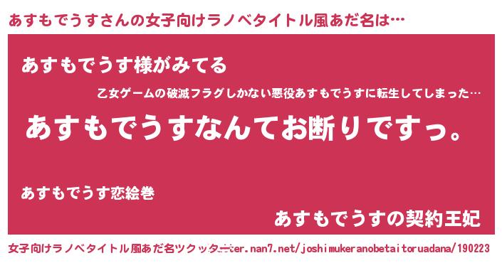 | ヘコむあだ名 | 『あすっ子』『あすもでうす(笑)』 |