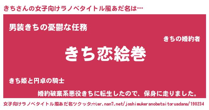 | 男性向けラノベタイトル風あだ名 | 『おまえをオタクにしてやるから、俺をきちにしてくれ! 』 |