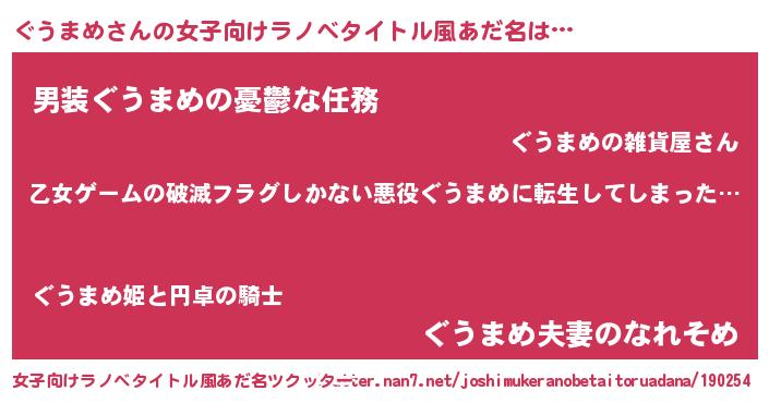 | ヒーロー風カッコイイあだ名 | 『仮面グウダー』『慈愛の使者ぐうまめ』 |