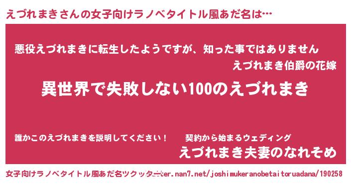 | 男性向けラノベタイトル風あだ名 | 『えづれまきという概念が存在しない退屈な世界 』 |