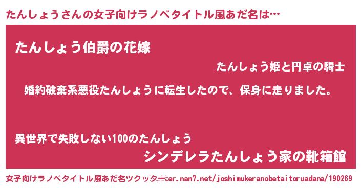 | 欧米人風あだ名 | 『トリンドルたんしょう』 |