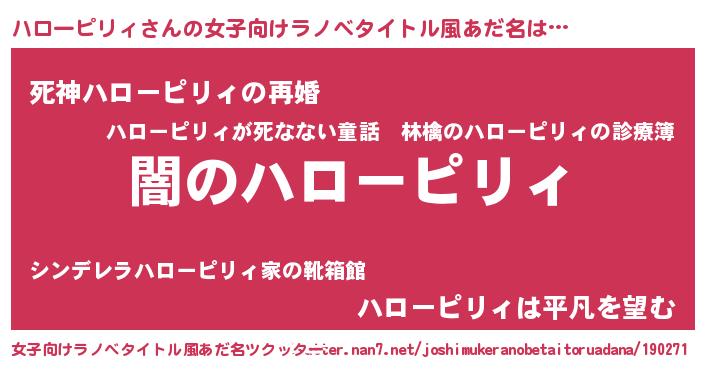 | 意味不明あだ名 | 『自称ハローピリィ』 |