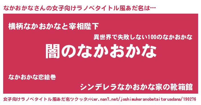 | 男性向けラノベタイトル風あだ名 | 『Re:なかおかなから始める異世界生活』 |