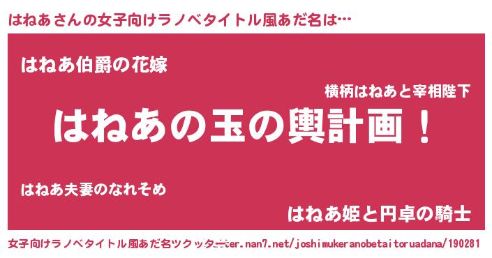 | 2回繰り返すあだ名 | 『わなわな』『ははねね』『はねはね』 |