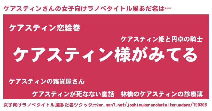 | ヒーロー風カッコイイあだ名 | 『炎刃騎士ケア』『愛の使者ケアスティン』 |