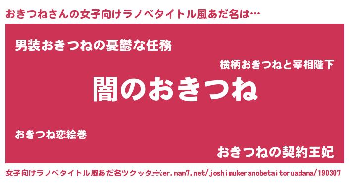 | 意味不明あだ名 | 『自称おきつね』『永久保存おきつね』 |