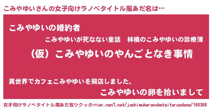 | 胡散臭い通販商品みたいなあだ名 | 『必ず成功する水晶球…その名も「こみやゆい」』 |