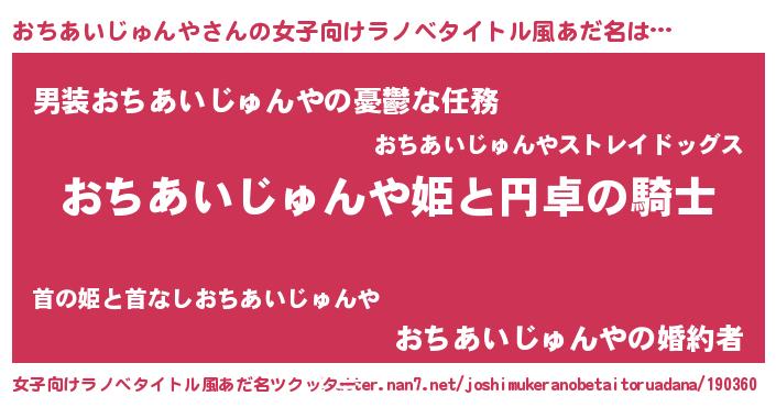 | 男性向けラノベタイトル風あだ名 | 『オチアイジュンヤアートオンライン』 |