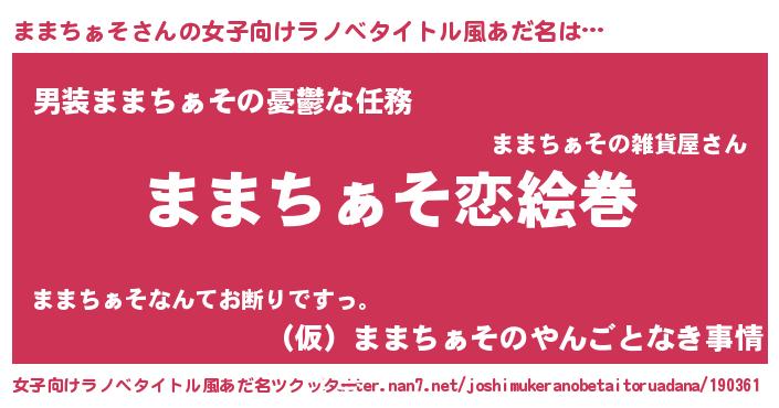 | 男性向けラノベタイトル風あだ名 | 『ノーゲーム・ノーママチァソ』 |