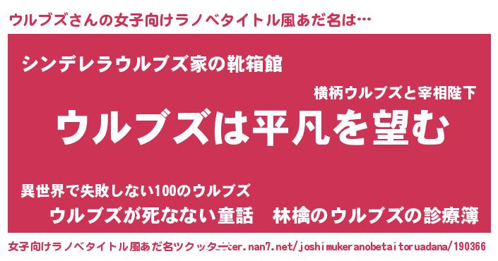 | ヒーロー風カッコイイあだ名 | 『魔戒騎士ウル』『仮面ウルダー』 |