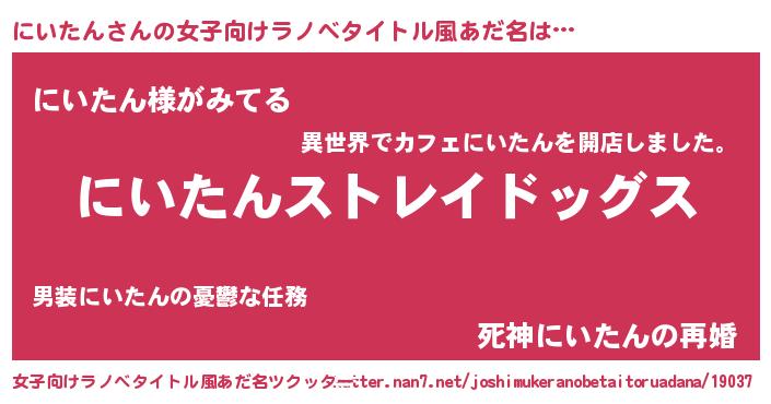 | 男性向けラノベタイトル風あだ名 | 『Re:にいたんから始める異世界生活』 |