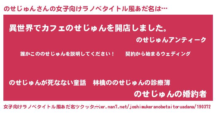 | 男性向けラノベタイトル風あだ名 | 『ノセジュンアートオンライン』 |