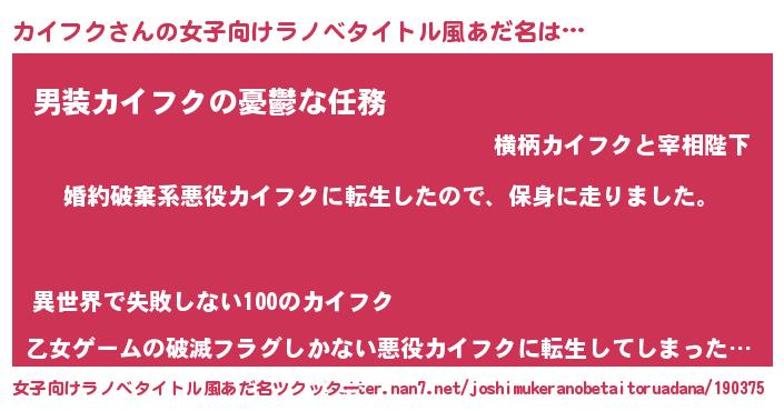 | 男性向けラノベタイトル風あだ名 | 『カイフクスレイヤー』 |