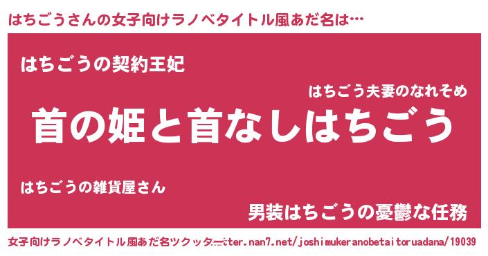 | 男性向けラノベタイトル風あだ名 | 『はたらくはちごうさま!』 |