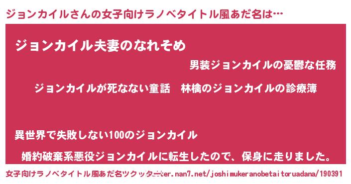 | 男性向けラノベタイトル風あだ名 | 『魔弾の王とジョンカイル』 |