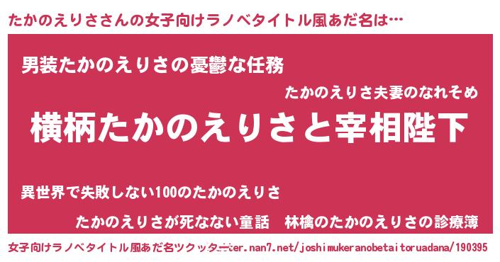 | 男性向けラノベタイトル風あだ名 | 『たかのえりさに滅ぼされるだけの簡単なお仕事です』 |