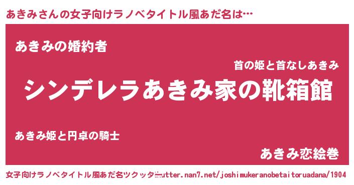 | 男性向けラノベタイトル風あだ名 | 『冴えないあきみの育てかた』 |