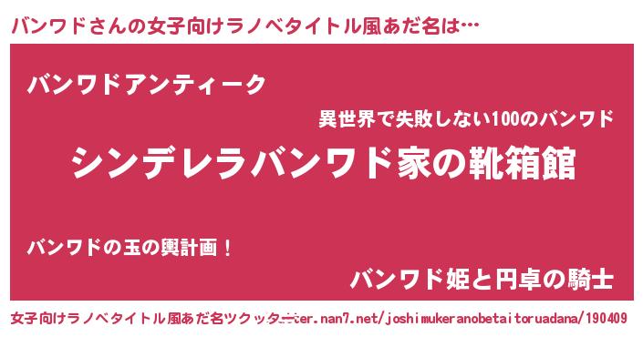 | 男性向けラノベタイトル風あだ名 | 『緋弾のバンワド』 |