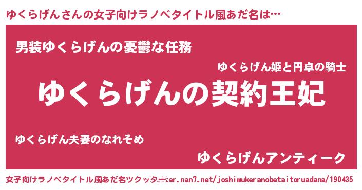 | 伝説のあだ名 | 『古より伝わる吟遊詩人ゆくらげん』 |