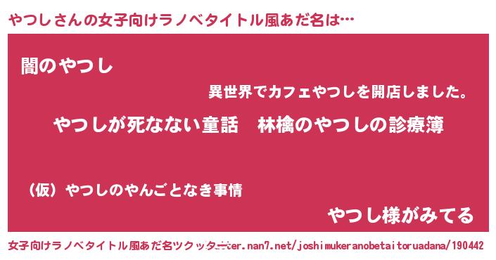 | 意味不明あだ名 | 『住所不定無職やつし(43歳)』『自称やつし』 |
