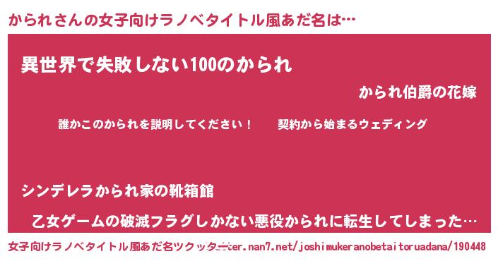 | 男性向けラノベタイトル風あだ名 | 『カラレアートオンライン』 |
