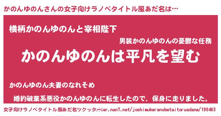 | 胡散臭い通販商品みたいなあだ名 | 『信頼と実績のサプリメント…その名も「かのんゆのん」』 |