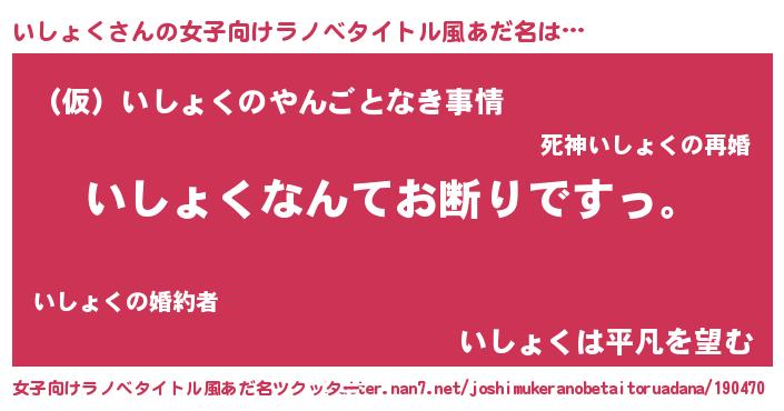 | 意味不明あだ名 | 『自称いしょく』『ペロリンいしょく』 |
