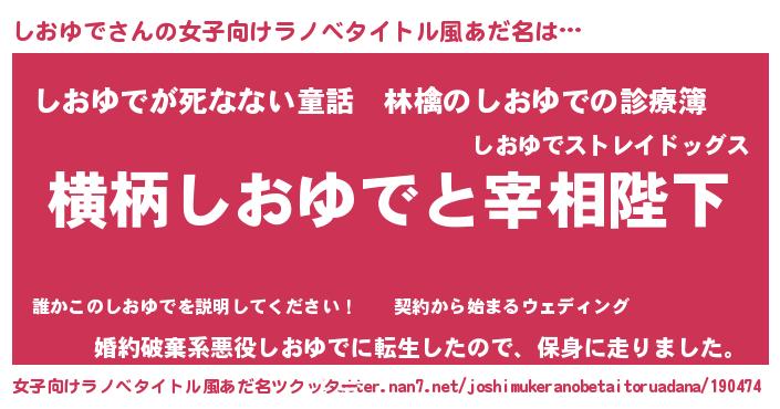 | ヘコむあだ名 | 『しおにー』『しおを』『豆乳』 |