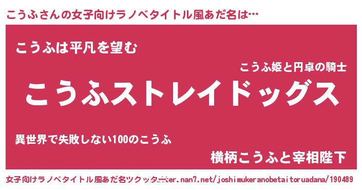 | 男性向けラノベタイトル風あだ名 | 『Re:こうふから始める異世界生活』 |