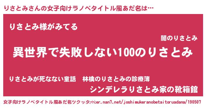 | 男性向けラノベタイトル風あだ名 | 『りさとみという概念が存在しない退屈な世界 』 |