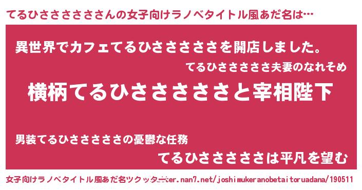 | 胡散臭い通販商品みたいなあだ名 | 『前代未聞の水素水…その名も「てるひさささささ」』 |
