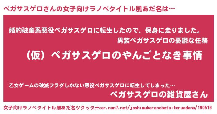 | 男性向けラノベタイトル風あだ名 | 『ペガサスゲロの憂鬱』 |
