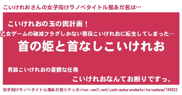 | 男性向けラノベタイトル風あだ名 | 『はたらくこいけれおさま!』 |