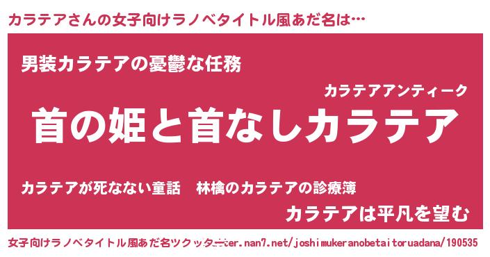| 男性向けラノベタイトル風あだ名 | 『はたらくカラテアさま!』 |