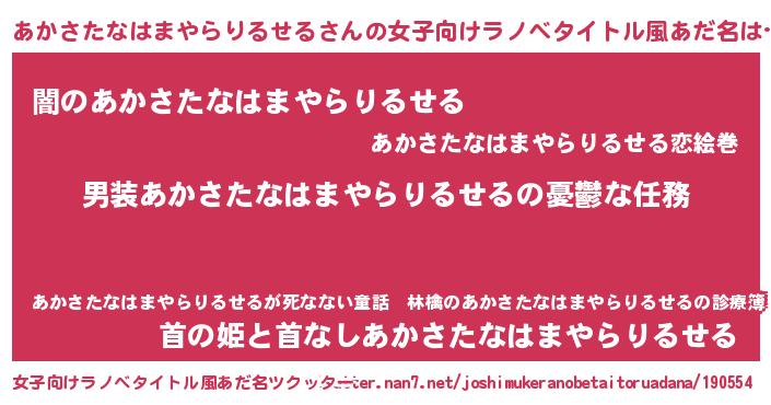 | 胡散臭い通販商品みたいなあだ名 | 『テレビで話題の高麗人参…その名も「あかさたなはまやらりるせる」』 |