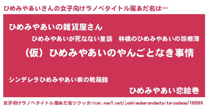 | 男性向けラノベタイトル風あだ名 | 『ひめみやあいの憂鬱』 |