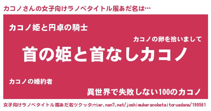 | 男性向けラノベタイトル風あだ名 | 『はたらくカコノさま!』『カコノの憂鬱』 |