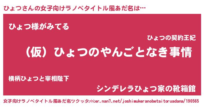 | 男性向けラノベタイトル風あだ名 | 『ひょつの憂鬱』『緋弾のヒョツ』 |