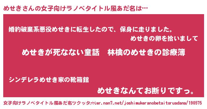 | 意味不明あだ名 | 『住所不定無職めせき(40歳)』『自称めせき』 |