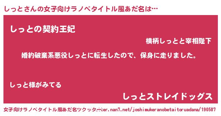| 男性向けラノベタイトル風あだ名 | 『転生したらしっとだった件』 |